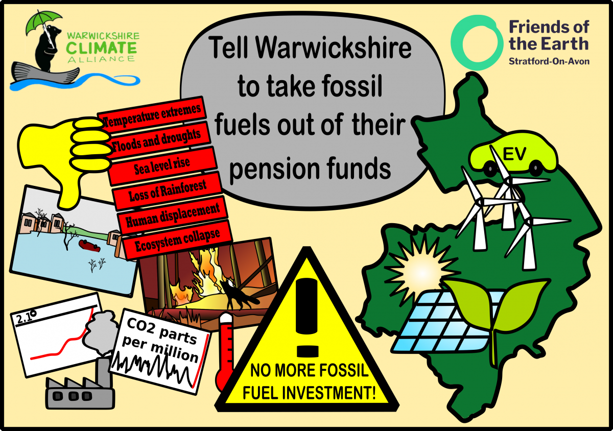 Campaign to persuade Warwickshire County Council to divest its pension fund from fossil fuel companies.